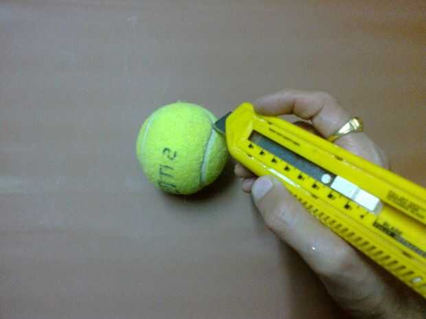 Pelota de tenis se hace de varias capas de fieltro y caucho. La costumbre del cuchillo de arte cortar la goma debajo del fieltro, pero derecho ahora nos interesa sólo en la reducción de la capa de fieltro