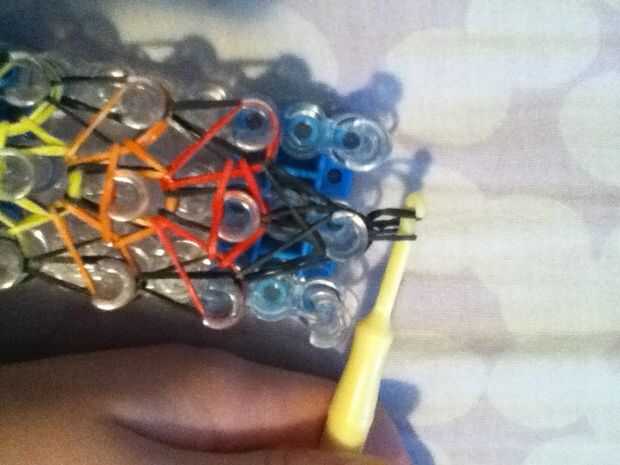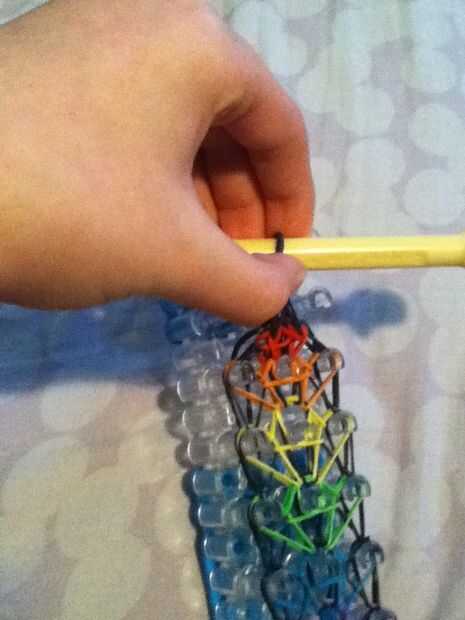 Para quitar tu pulsera de telar, necesita su gancho por debajo de todas las bandas en la última media peg y su gancho por el lado del palillo. Tome una banda de goma negra y gancho en el extremo de la herramienta de enganche. Sosteniendo el otro extremo del elástico, tire su anzuelo a través por lo que es el elástico alrededor de todas las bandas en la clavija final. Coloque el extremo que tiene en sus manos el gancho para que ambos extremos del elástico en el gancho y firmemente alrededor del extremo de la pulsera. Mantener el gancho en la venda de elástico, tire con cuidado de la pulsera de telar, teniendo cuidado de que el elástico no sale el gancho.