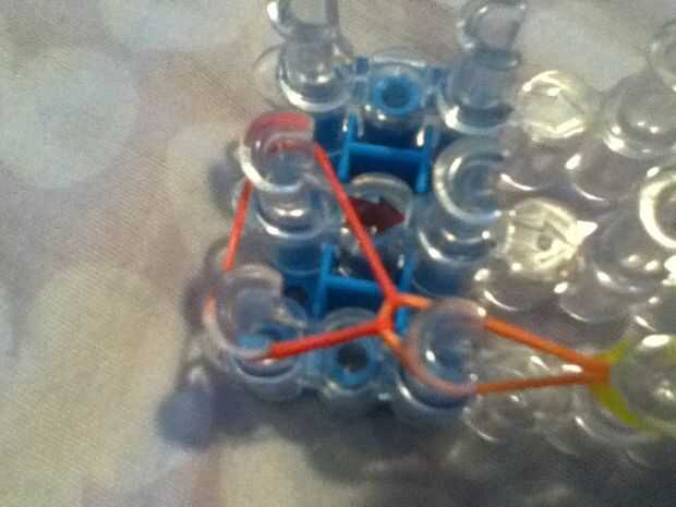 Paso 1: materiales Gancho clip C bandas de goma de telar del telar del arco irisPaso 2: colocar Hacer las clavijas en un gran rectángulo también Asegúrese de que la flecha es hacia usted que colocar una banda de goma del centro a la izquierda y luego