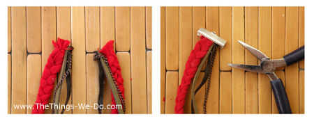 Coloque un extremo de la pulsera del corchete de la joyería y manipular el cierre con las quijadas de los alicates. Asegúrese de que está bien squizzed. Repita lo mismo con el otro borde del brazalete.