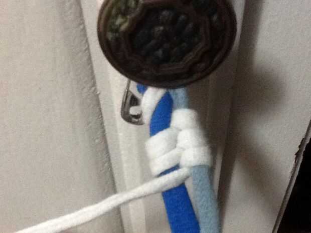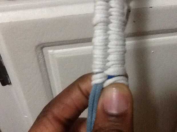 La pulsera se verá así. Si elige colores de hilos, los colores mostrará a través de los huecos. Para una mirada alternativa, puede empujar desde el fondo de la trenza, vas a lo largo o al final del trenzado, para comprimir las trenzas.