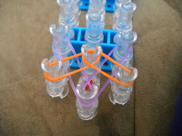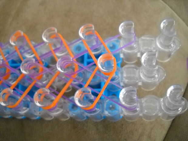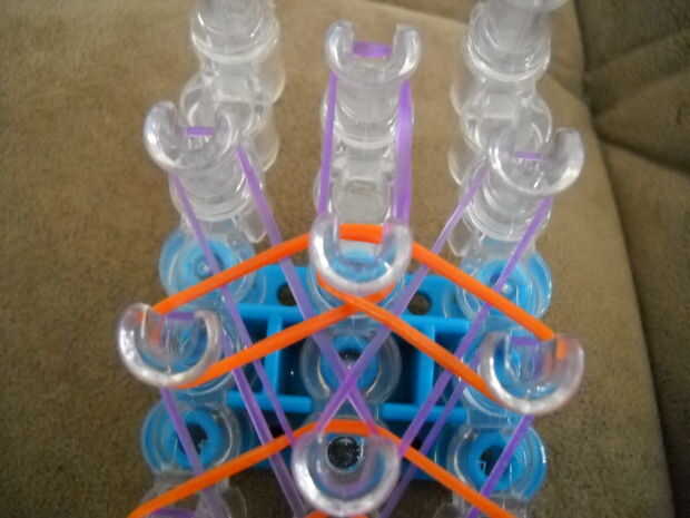 Paso 1: fuentes de Necesita un kit de inicio para el telar del arco iris y algunas elásticas.Paso 2: Colocar las bandas Iniciar colocando un color de borde y no empezar a poner encima de todo lo que tienes que hacer en los patrones.Paso 3: Colocar la