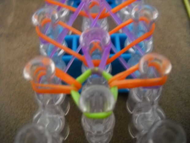 Paso 1: fuentes de Necesita un kit de inicio para el telar del arco iris y algunas elásticas.Paso 2: Colocar las bandas Iniciar colocando un color de borde y no empezar a poner encima de todo lo que tienes que hacer en los patrones.Paso 3: Colocar la