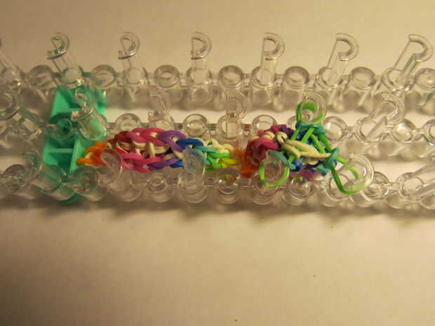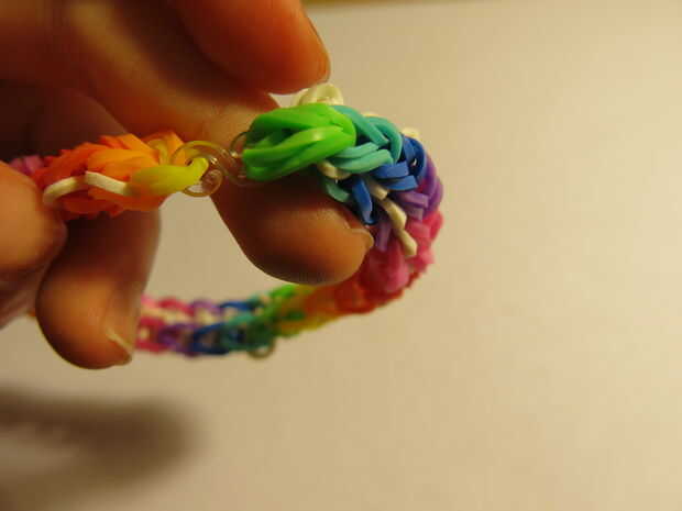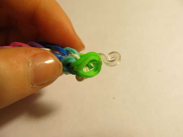 Una vez tiene utilizar toda tu banda y terminó la última puntada, colocar tu clip C o S a las bandas restantes de cada palo.