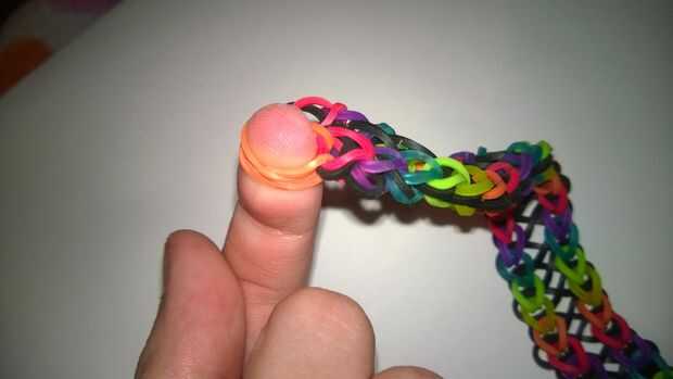 Giro de chicloso o pulsera del infinito en el telar del arco iris