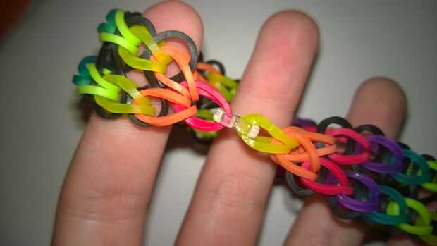 Clip de la banda final y tomar la pulsera de dedo. Luego, enganche la primera banda en el otro lado y se acaba tu pulsera!