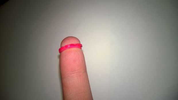 Lazo su primera banda una vez en el dedo. Use un gancho o un lápiz si esto es difícil para usted.