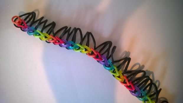 Repita hasta que has usado toda tus franjas negras y alrededor de la mitad su arco iris unos.