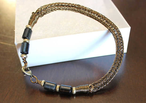 En este instructable me gustaría mostrar cómo hacer una sencilla y elegante Viking Knit con cuentas pendientes. He utilizado Viking knit para el cuerpo del aro y un hilo por el punto que sostiene su forma. El pendiente se asegura con un hippy con bis