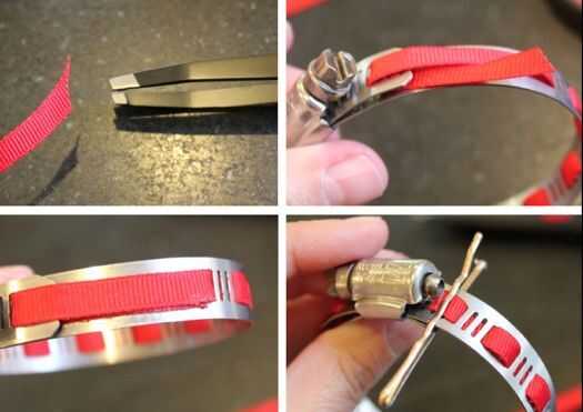 Al llegar al final, doblar la cinta y pegamento con cola E 6000.