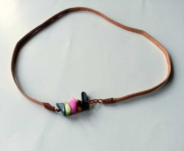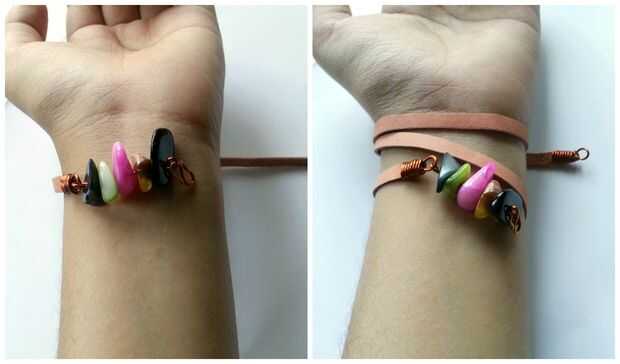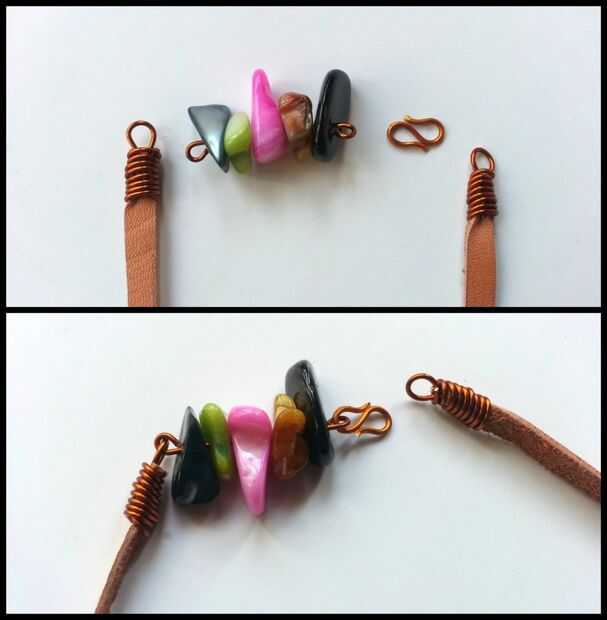 Coloque el cable granos, cuero en espiral y gancho junto. Puede Agregar cadenas extras si quieres, pero no lo hice.