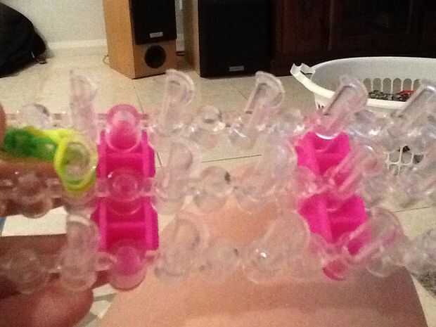 esta es probablemente una de las pulseras más fáciles se puede hacer! Les espero guste!Paso 1: Lo que necesitará 1. un telar2. un gancho3. colores bandasPaso 2: Vamos a empezar! Añadir sólo una cadena de bandas en el centro del telar. Puede utilizar