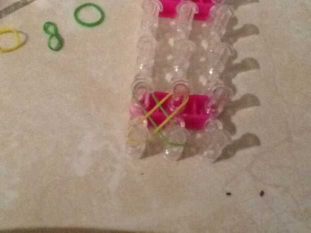 esta es una banda que inventéPaso 1: La posición del telar Necesita la fila del medio aPaso 2: Colocación de bandas Place bands as shownPaso 3: que se avecina Paso 4: extensión Make an extension