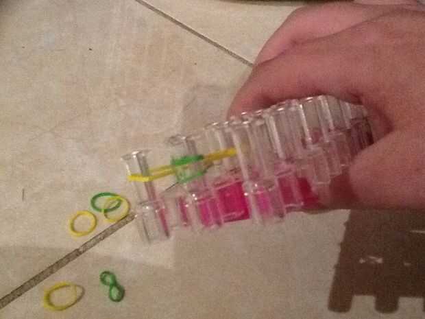 esta es una banda que inventéPaso 1: La posición del telar Necesita la fila del medio aPaso 2: Colocación de bandas Place bands as shownPaso 3: que se avecina Paso 4: extensión Make an extension