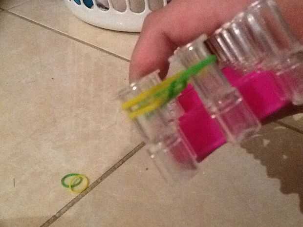 esta es probablemente una de las pulseras más fáciles se puede hacer! Les espero guste!Paso 1: Lo que necesitará 1. un telar2. un gancho3. colores bandasPaso 2: Vamos a empezar! Añadir sólo una cadena de bandas en el centro del telar. Puede utilizar