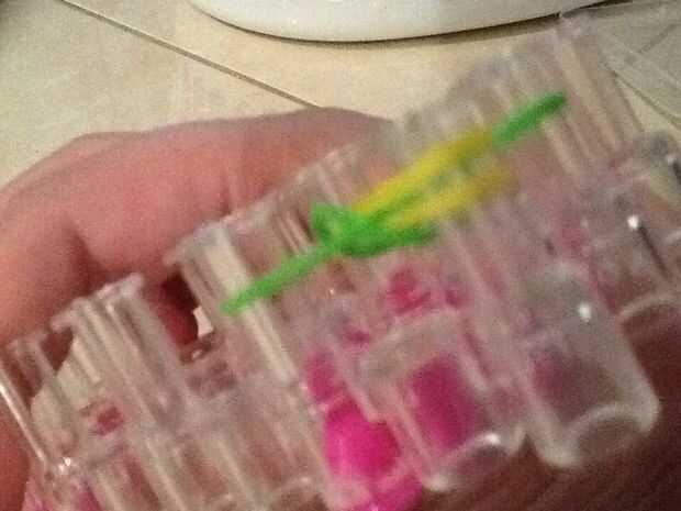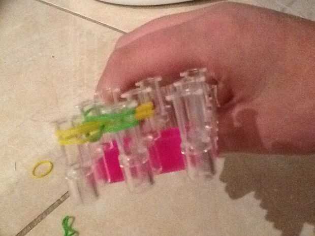 esta es probablemente una de las pulseras más fáciles se puede hacer! Les espero guste!Paso 1: Lo que necesitará 1. un telar2. un gancho3. colores bandasPaso 2: Vamos a empezar! Añadir sólo una cadena de bandas en el centro del telar. Puede utilizar