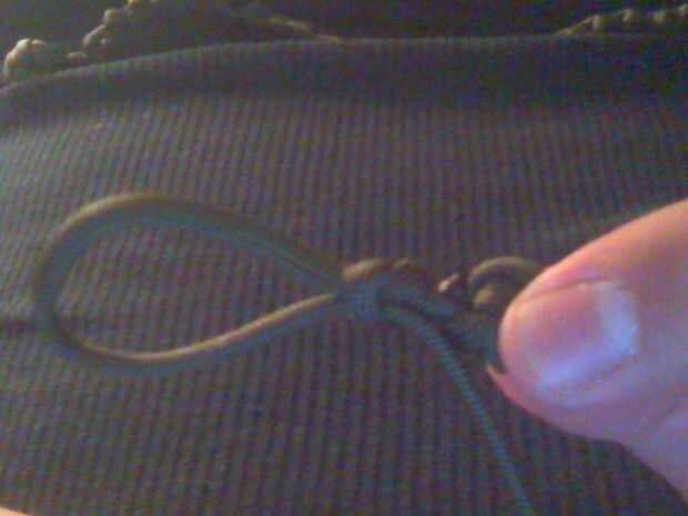 Una vez a través de la 1 º el 2 º lazo, tire toda la holgura del lazo 1, esto hará un nudo 2 cerca del mono, puño y un lazo que le da el comienzo a la pulsera.