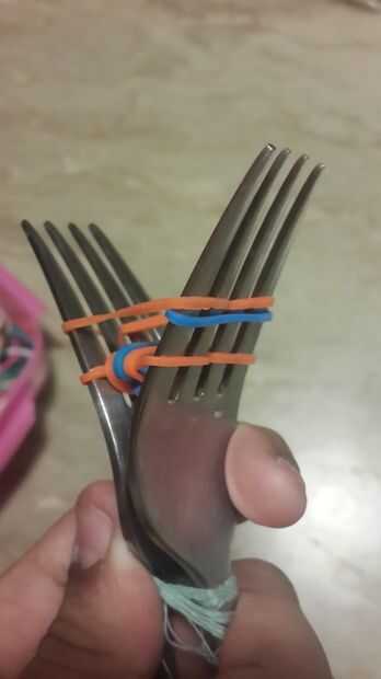 Pulsera en dos horquillas (fáciles) el ferrocarril (4 / 5 paso)