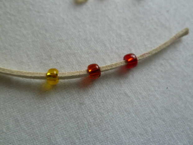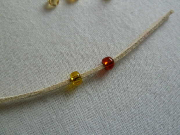 Tus cuentas y añadir a la cadena. Puede utilizar una orden, o poner en aleatorio. Para la pulsera más oscura no usé una orden, para las otras dos que hice.