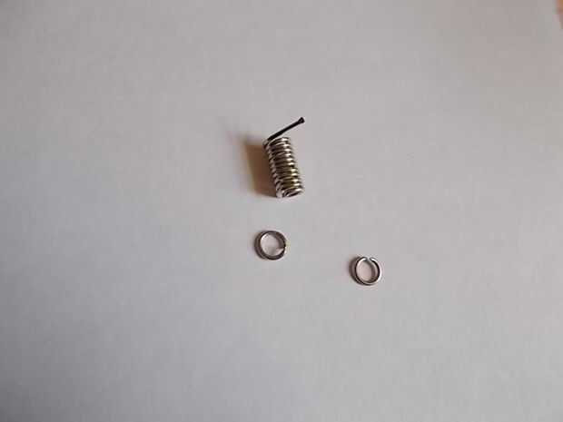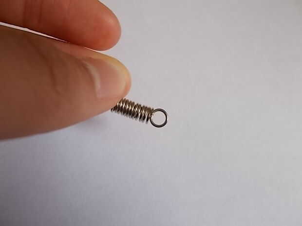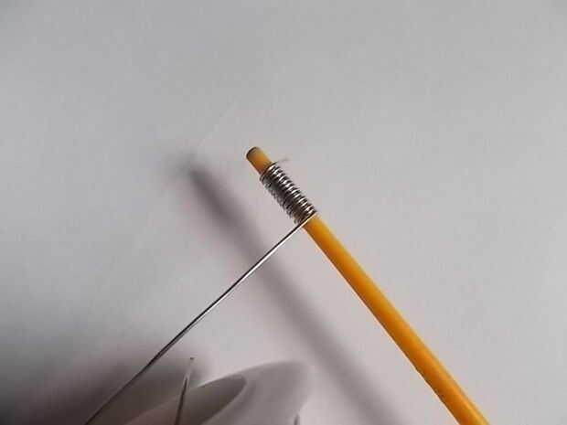 No tengo anillas prefabricadas, así que hice mi propio usando el cable de mi. Para ello, sólo envuelve el alambre alrededor de un objeto cilíndrico (pincel, en mi caso) y corte el cilindro de bucles. Entonces yo cortar anillas cuando necesitaba uno (he hecho un montón extra para uso futuro.).