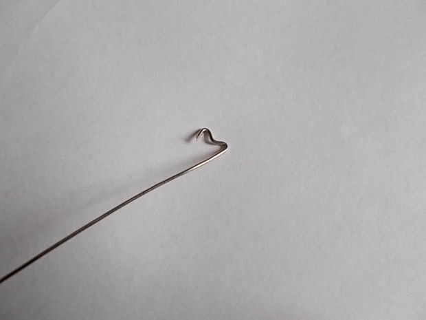 Doble el alambre hacia adentro sobre 3 mm desde la curva anterior y entonces hacia fuera otra vez aproximadamente 3mm de esa curva. Ver cuadro número 2 arriba para ver qué cosas deberán estar alineados.