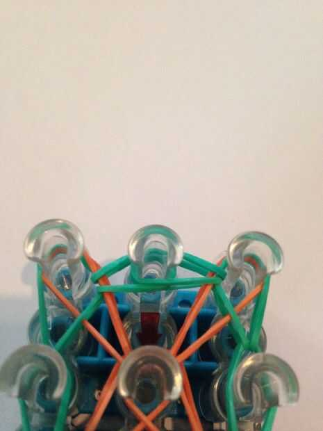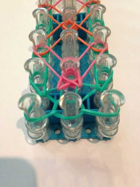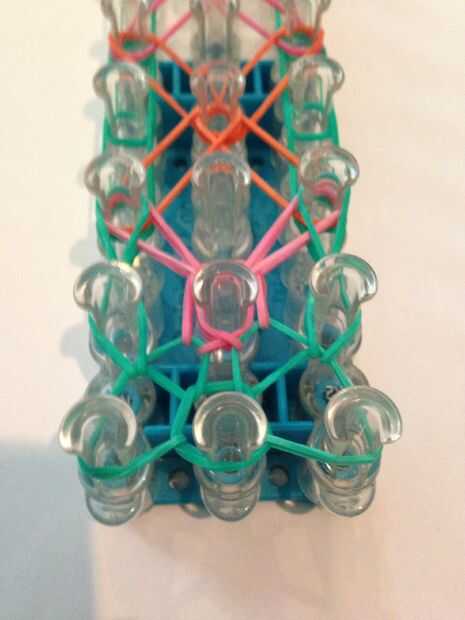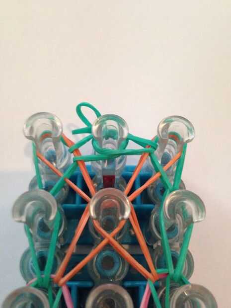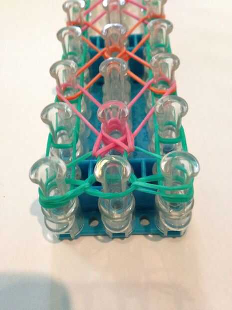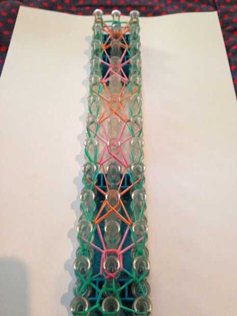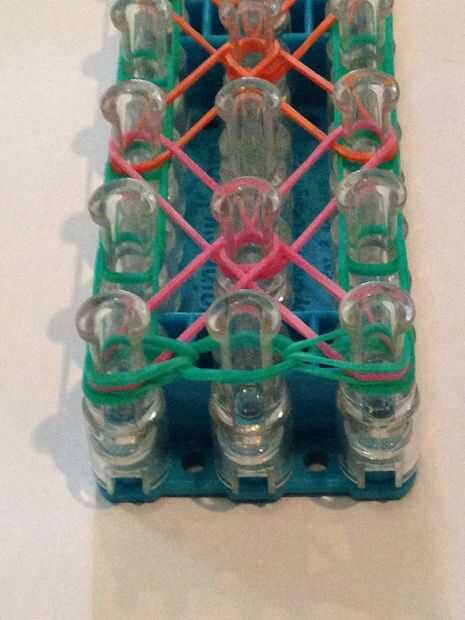 Let's start looping the bands. Obtener su anzuelo (el mío es metal). Vuelta el telar para que la flecha quede frente a usted. Ir a través de la banda que capsula y lazo de la banda superior a la izquierda. Lo mismo con la derecha. Luego entonces lazo la clavija izquierda superior a la media. Lo mismo con la derecha. Luego enrolle la banda izquierda inferior hacia adelante. Lo mismo con la derecha. Vaya la banda superior de la clavija 2 º media a la izquierda del lazo. Lo mismo con la derecha. Luego enrolle la banda inferior en la clavija 2 º en el delantero izquierdo. Hacer lo mismo con la derecha. Hacer esto otra vez hasta que termines con listo con su telar. Después de que termines la banda izquierda inferior a la banda central del lazo. Lo mismo con la derecha. Ate con su banda de color de borde y agregar extensiones si es necesario
