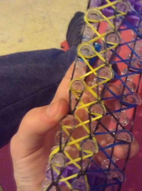 Esta es la "banda de telar fácil cobra"Tendrás necesidad de---38 blanco (o cualquier otro color) telar de bandas.--azul oscuro 25 (o cualquier otro color) telar de bandas.--24 amarillo (o cualquier otro color) telar de bandas.--un telar de mesa-