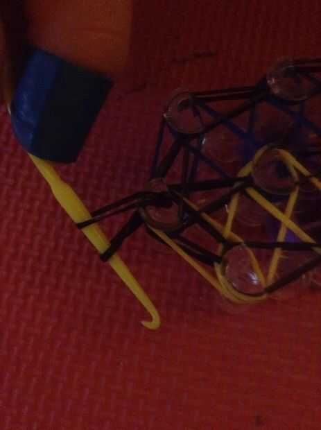 Esta es la "banda de telar fácil cobra"Tendrás necesidad de---38 blanco (o cualquier otro color) telar de bandas.--azul oscuro 25 (o cualquier otro color) telar de bandas.--24 amarillo (o cualquier otro color) telar de bandas.--un telar de mesa-