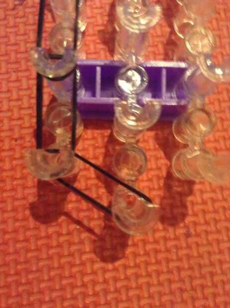 Esta es la "banda de telar fácil cobra"Tendrás necesidad de---38 blanco (o cualquier otro color) telar de bandas.--azul oscuro 25 (o cualquier otro color) telar de bandas.--24 amarillo (o cualquier otro color) telar de bandas.--un telar de mesa-