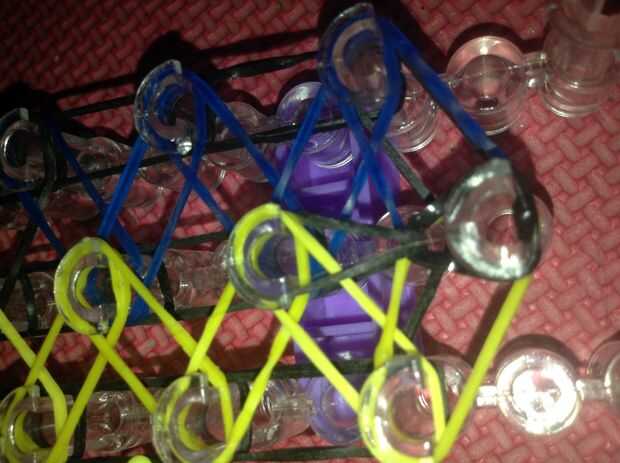 Esta es la "banda de telar fácil cobra"Tendrás necesidad de---38 blanco (o cualquier otro color) telar de bandas.--azul oscuro 25 (o cualquier otro color) telar de bandas.--24 amarillo (o cualquier otro color) telar de bandas.--un telar de mesa-