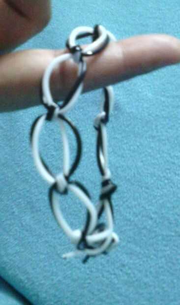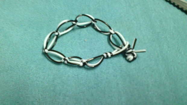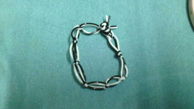 Para cerrar la pulsera, el bob en el primer lazo y nuevamente convertirlo y ponerlo en su propio lazo formando un bloqueo.