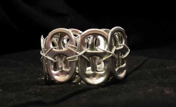 empezar a los contenedores de reciclaje asaltar a!Aluminio de vuelta puede pestañas en joyería cool!Paso 1: Reúna los suministros Para empezar, necesita una pila de fichas pop. Entre 20-26, dependiendo de tamaño de la muñeca.También necesitas tijeras