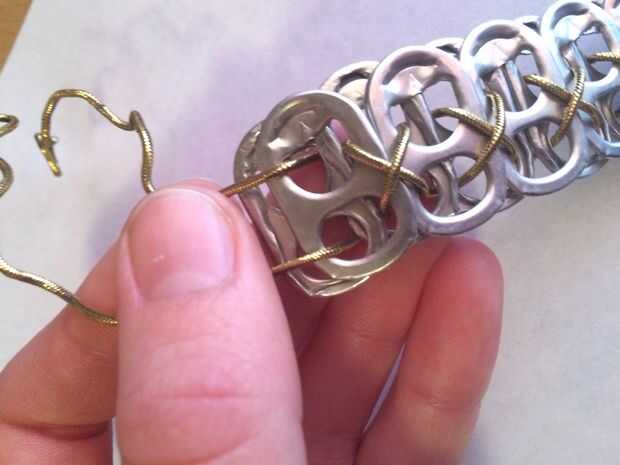 empezar a los contenedores de reciclaje asaltar a!Aluminio de vuelta puede pestañas en joyería cool!Paso 1: Reúna los suministros Para empezar, necesita una pila de fichas pop. Entre 20-26, dependiendo de tamaño de la muñeca.También necesitas tijeras