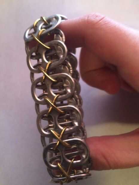 empezar a los contenedores de reciclaje asaltar a!Aluminio de vuelta puede pestañas en joyería cool!Paso 1: Reúna los suministros Para empezar, necesita una pila de fichas pop. Entre 20-26, dependiendo de tamaño de la muñeca.También necesitas tijeras