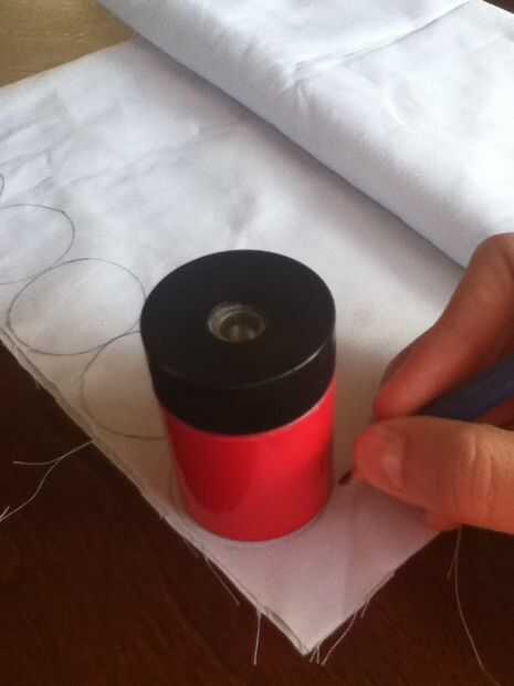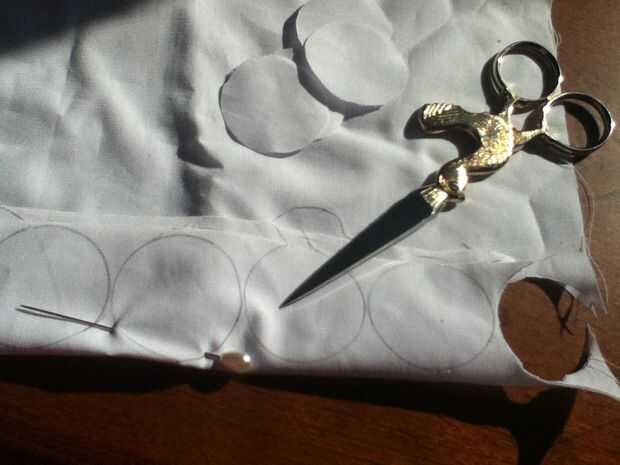 Recortar el número de círculos con tus tijeras de tela. Es mucho más rápida de doblar a tu tela sobre un par de veces y pin antes de empezar a cortar. De esta manera no necesita cortar círculos casi tantas, y probablemente sean más uniformes.