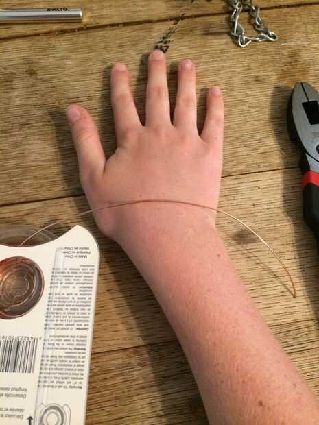 Medir el alambre de cobre para que se envuelva alrededor de su mano entera y luego añadir aproximadamente 2 pulgadas