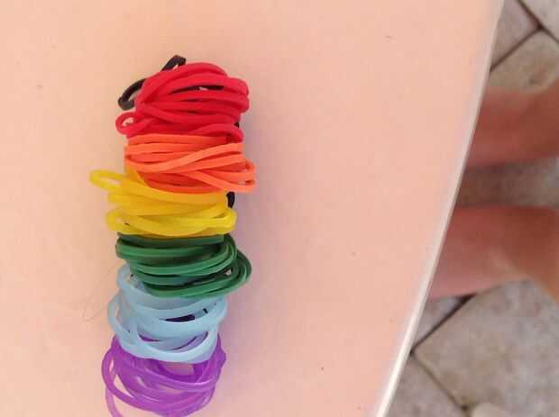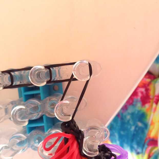 2: vamos a crear el respaldo para que su puede su alrededor de su muñeca para tomar cualquier color de la banda y bajar el telar entero con solo bandas