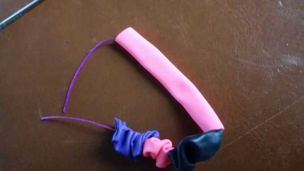 Una vez que estés satisfecho con el número de tiras del globo que ha roscado, atar un nudo del hilo de rosca los globos en el elástico.