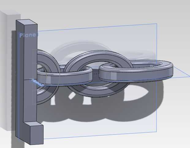 La cadena se puede hacer en los mismos archivos. Hacer un plano a la mitad el dibujo de L., saca filete en algunos anillos. Hacer otro plano transversal y el semicírculo y el anillo de conexión de los otros anillos.