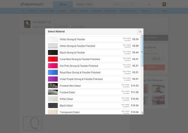 Seleccionar el material. Cada material tiene su propio grosor mínimo, asegúrese de que el material elegido tiene un espesor de pared mínimo inferior de los cables y paredes más pequeñas en el modelo.