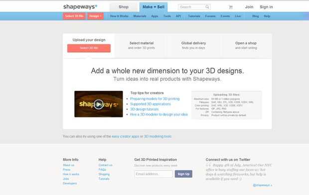 Haga clic en 'hacer y vender' y subir tu fichero .stl.
