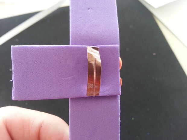 Corte 1' pedazo de cinta de cobre y el uso que se adhiere el LED opuesto conducen a la tira de espuma rectangular.