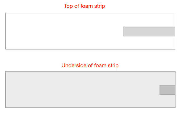 Recoger la longitud más larga de tela conductora y pegamento a la tira de espuma para que quede centrado y el borde de la tira conductora envuelve el borde de la espuma por lo que hay. 5" de tejido conductor en la parte inferior.