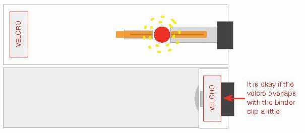 Tome un pedazo de velcro adhesiva y pegarlo a la pulsera como se ilustra. (No importa qué lado de la