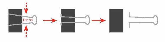 Ahora retire las piezas de metal del clip binder por pellizcar las piernas hacia adentro, entonces tirando de los mismos
