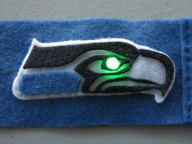 Este proyecto puede ser una buena introducción a los circuitos suaves y cómo construir un circuito básico. Utiliza hilo conductor, CNC corte tela conductora y plástica resistiva o Velostat. Un LED RGB se cose en el diseño de aves ojo y cambia de colo