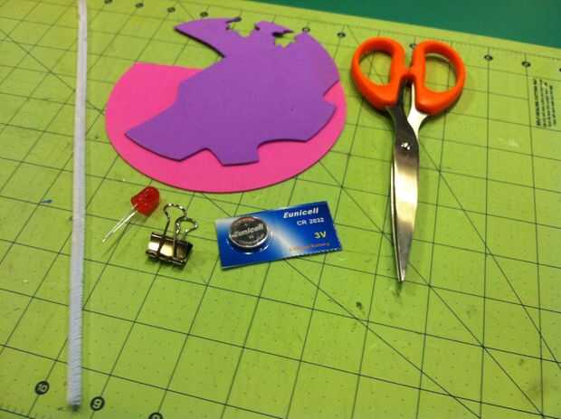 Hacer un divertido luz pulsera con espuma, un LED y una batería de 3v la moneda. Es fácil, divertido y llamativo!Paso 1: Materiales necesarios:Espuma de la diversiónFlores de espuma divertido u otras formasCinta de cobre autoadhesivaLámpara de LEDbat