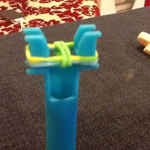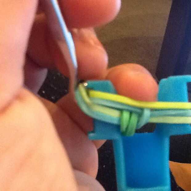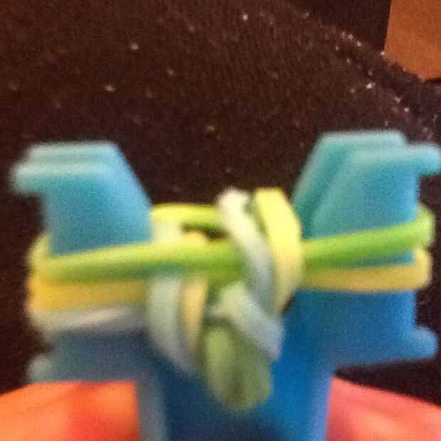 Paso 1: materiales!!! Telar o los dedos o una herramienta, gancho, bandas, clipPaso 2: 1 banda Colocar una banda en una x en la herramientaPaso 3: siguiente Lugar 2 bandas más en la herramientaPaso 4: bucle! Agarrar la banda inferior y coloque encima