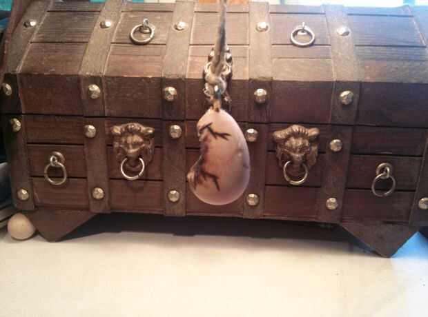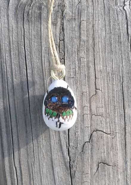 El tornillo de mirilla en la parte superior del huevo y su colgante se completa. Pintar, mancharlo o dejarlo natural. Espero que disfruta y se divierten creando!