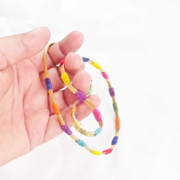 Mantenga la adición de varios colores como se muestra en los pasos anteriores, dejando un pequeño espacio de oro para mostrar entre los colores. No tiene que ser perfectamente abriese. He dejado de 2..5 "llano sin envolver porque quería un poco de la varianza cuando como una pulsera.
